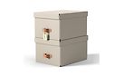 Set of two low 17-liter storage boxes made of stackable and durable cardboard, featuring a leather handle for easy handling. The boxes are suitable for A4-sized papers and other small items.
