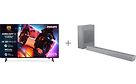 Philips 65" MLED910 on 4K QD Mini-LED -televisio, jossa on Ambilight-valaistus. Pakettiin kuuluu myös TAB8505 2.1 Dolby Atmos -äänipalkki.