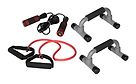 Atom Push Up -treenisetti sisältää punnerrustangot, vastuskuminauhan ja hyppynarun. Setti sopii pieneen tilaan ja mahdollistaa monipuolisen lihaskunto- ja aerobisen harjoittelun kotona.