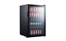 FrigeluX D115NV -juomakaappi, jossa on lasiovi ja kolme kestävää teräslankahyllyä. Se viilentää juomat 3–10 °C lämpötilaan ja sopii sekä koti- että ammattikäyttöön.