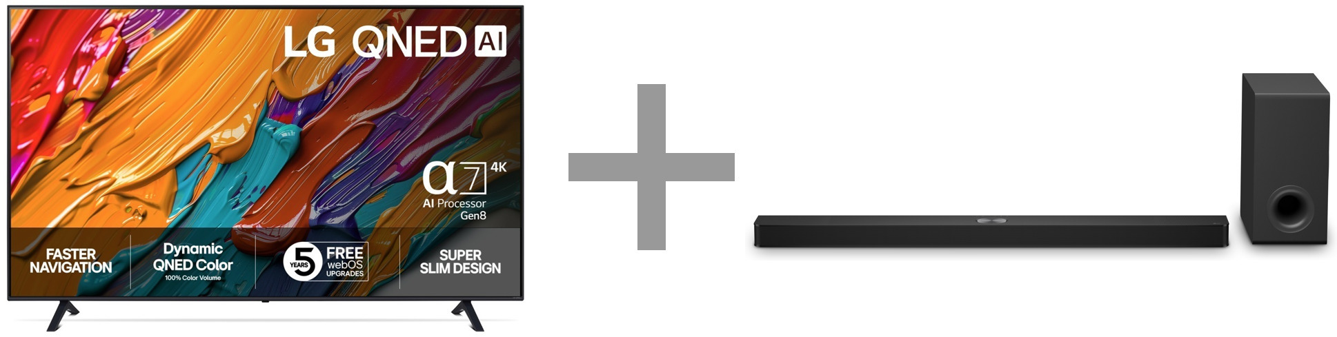 LG 65'' QNED 7E – 4K TV (2025) + LG S90TY 5.1.3 Soundbar Dolby Atmos -tuotepaketti