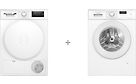 1024295Bosch WGE02200SN Serie 2 pyykinpesukone + WTH8300LSN Serie 4 kuivausrumpu + WZ27400 väliasennussarja aputasolla