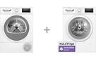 Bosch WAN2821ISN Serie 4 pyykinpesukone + WTH85V0CSN Serie 4 -kuivausrumpu + WTZ27410 kiinteä väliasennussarja