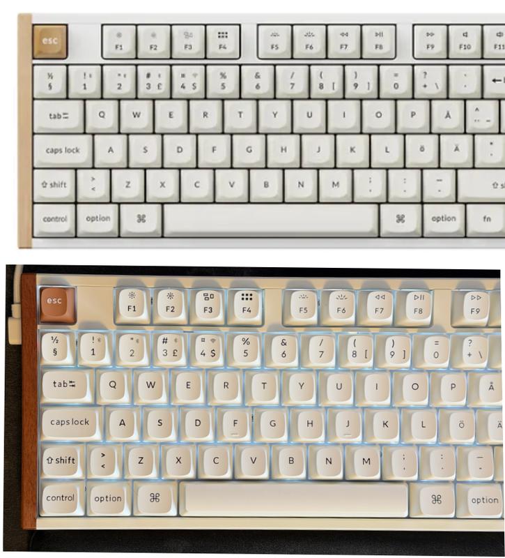 Hyvä ja laadukas tuntuma. Merkittävin pettymys on se, että väri poikkeaa markkinoidusta: "puuosat" ovat selvästi samaa tummempaa väriä kuin mustassa versiossa. Itse tykkäisin myös, että johto tulisi näppäimistön keskelle eikä sivuun, jolloin se jää selvästi enemmän näkyviin.