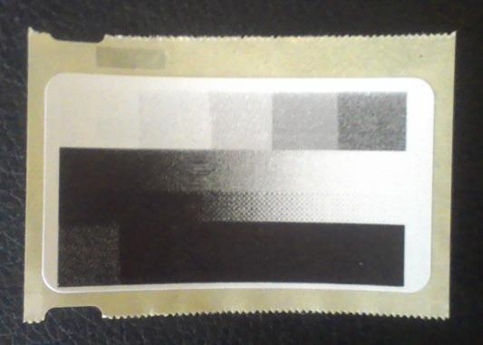 Tulostusjälki on tarkkaa, vaikka tulostin ei osaakaan tehdä oikeaa harmaata, vaan käyttää dither-tekniikkaa mustan laimentamiseksi. Ohessa on kuva, josta näkee harmaan sävyjen tulostumisen. Ylä- ja alareunoilla on palkit aina 10% tummempana ja keskellä menee tasaiset liukumat mustasta valkoiseen. Kuvan tarra on 57mm x 32mm.