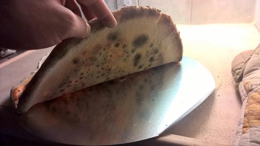 Vanha vuolukivi oli mielestäni liian pieni ja halusin halkaisijaltaan suuremman paistokiven, pieleen meni. ensimmäinen pizza uunissa samoin tehtynä kuten aikaisemminkin, taikina ei millään saa tarpeeksi lämpöä kivestä, entisellä kivellä pohja paistui rapeaksi nyt pelkkää taikinaa vaikka pidin 4 min kauemmin eli entisen 8 min sijaan 12 min. Reunat kyllä palaa mutta taikina pohja ei kypsy. vika voisi olla siinä että liian kova lämpö joten kokeilen vielä pienemmällä lämmöllä.