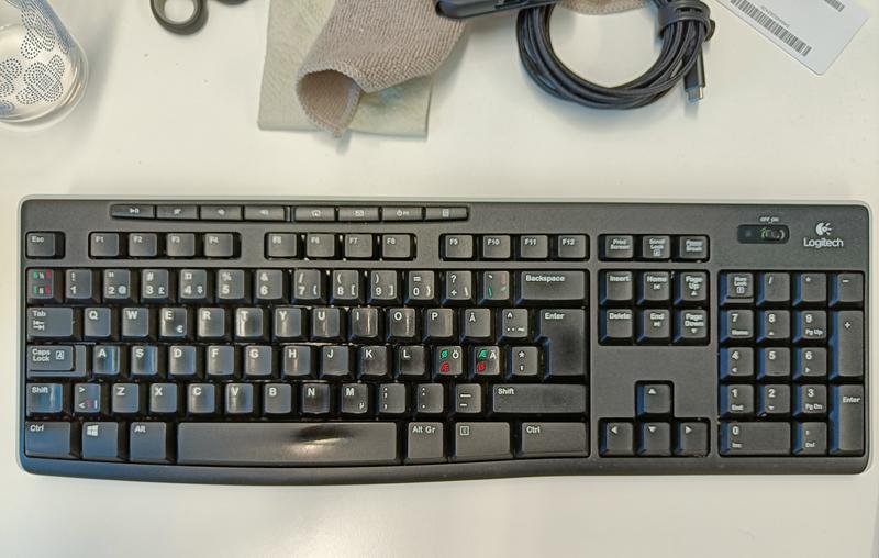 Ostin taas uuden K270-näppiksen, koska sen layout on omiin sormiin paras sitten legendaarisen IBM:n näppiksen. Muutenhan tämä on mainio näppäimistö, mutta nopeassa kirjoituksessa jää aina silloin tällöin painalluksia menemättä tietokoneelle asti; esim. Backspacen painaminen nopeasti jonkun toisen näppäimen perään ei välttämättä rekisteröidy. Satunnaisesti painalluksia jää huomioimatta myös hitaasti painettuna. USB-vastaanotin on tuotu jatkojohdolla n. 60 cm päähän näppäimistöstä, joten etäisyydestä sen ei pitäisi olla kiinni.
