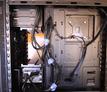 Etu-tuulettimien ilman kiertoa rajoittaa HD-räkki. Poistin siitä syystä ylemmän räkin ja siirsin etutuulettimen ylempään paikkaa ja toisen kopan pohjaan. MAinittakoon, että kotelossa on tilaa kattossa tuulettimille, vaikka prossutuulettimena olisi jären Macho Direct. Esimerkiksi Corsair Spec-03 kotelossa ei näille ole tilaa samassa kokoonpanossa.