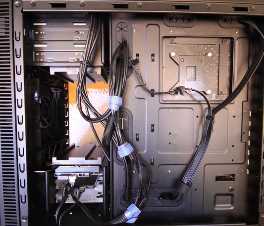 Laitteiston asentaminen koteloon on helppoa, kovalevyille tilaa runsaasti ja vesijäähy meni ongelmitta paikalleen koneen takaosaan. Äänenvaimennettu vielä kaiken lisäksi. USB-portteja kotelon etuyläkulmassa neljä kappaletta, 2 × USB3 ja 2 × USB2. Lisäksi audioliitännät.