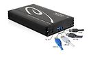 Combo liitin on hieman muovinen kotelon hintaan nähden, mutta kaikki tarvittavat kaapelit (eSATA, USB3, USB power) ja ruuvimeisseli tulevat mukana ja laite toimii moitteettomasti. Plussaa on, että myös 12,5 mm paksut 2,5" kovalevyt (esim. WD10TPVT) menevät koteloon sisälle.