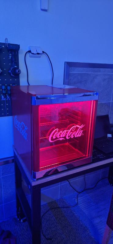 Näppärä ja nätti pieni Coca-cola-jääkaappi. Soveltuu hyvin esim. nuoren omaan huoneeseen tai pelihuoneeseen.