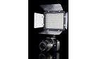 Ei tule mukana. YN-300 on ainoastaan akkukäyttöinen, joten jos sopivaa (Sonyn videokameroissa yleisesti käytettyä) akkua ei löydy, niin sellainen pitää hankkia. Kannattaa myös katsoa järeämpi YN-600, jossa tulee mukana virtalähde: