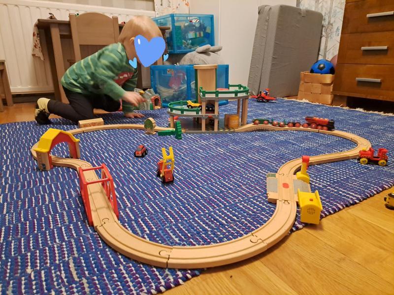 Parkkitalo suurempi kuin oletin kuvasta. Lapsi tykkäsi tästä kovasti! Toimii yksinään parkkitaloleikkeihin tai junarataan yhdistettynä.