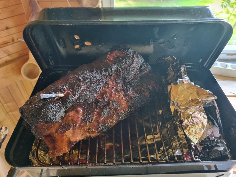Pari vuotta käyttänyt ja olen kyllä tykännyt. Valmistuu perus burgerit ja makkarat suoralla tulella, mutta myös isompien lihakönttien savustus pienen foliovirityksen kanssa onnistuu. Esim 2,5kg kassu mahtui vielä justiinsa, kun pakkasi muutamat hiilet reunalle ja viritteli folion väliin. Koko köntti savustettu (9h) 14 briketillä!