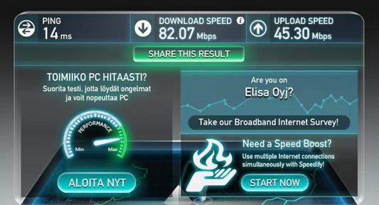 Taitaa olla teoreettinen nopeus tuo 150Mbps, mutta lähelle sataa mennään Elisan liittymällä!