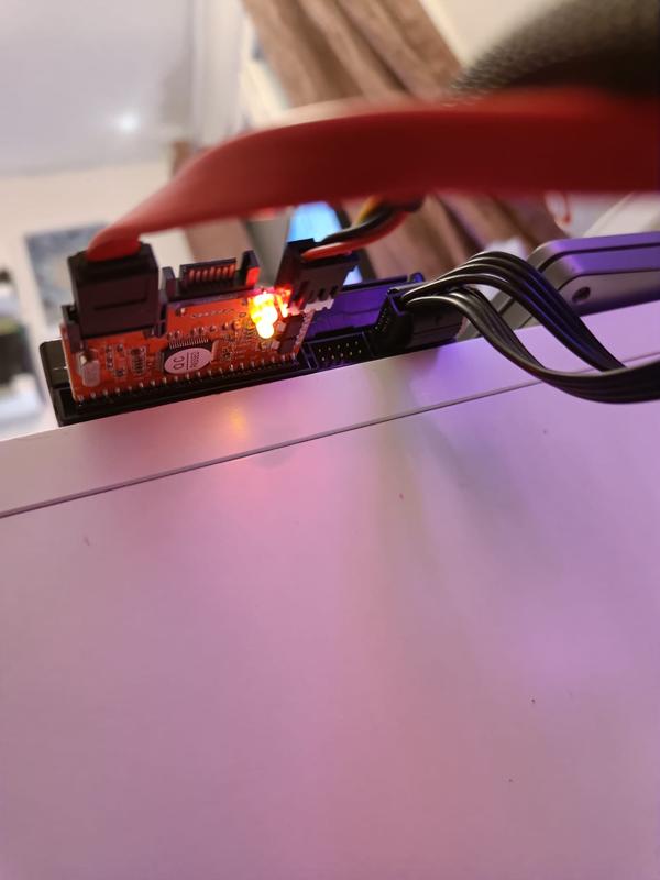 Yritin saada vanhan lapsuuden tietokoneen kovaleyvä uuteen koneeseeni jonka emolevyssä ei ole IDE paikkaa. Adapterin avulla tietokone ei tunnistanut että tietokoneessa olisi yhtään enempää kovalevyjä.