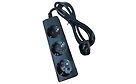 Liitetään UPS:n virtapistokkeeseen, muuntaa IEC C14 -liitännästä kolme tavallista maadoitettua schuko -pistorasiaa