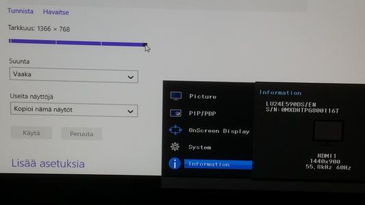 Haluaisin kannattavalle PC:lle ison lisänäytön 24" mahdollisimman hyvällä resoluutiolla. PC:n oman näytön resoluutio on 1440x900. Voiko ulkoisen näytön resoluutio olla 3840x2160?
