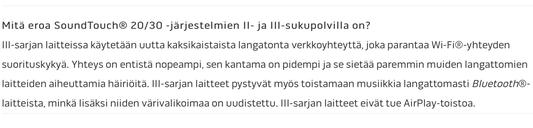 Bosen omien sivujen mukaan kolmos-sarja ei enää tue AirPlay-toistoa? Sivuilla kerrotaan yhden olennaisen eron kakkos- ja kolmos-sarjalaisesse olevan juuri tämä AirPlay-toiston puuttuminen. Toki paljon hyvää on tullut sen tilalle.
