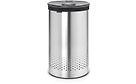 Brabantian ruostumattomasta teräksestä valmistettu pyykkikori, jonka kannessa quick drop -aukko, sisällä Velcro-tarra kiinnitteinen puuvillainen sisäpussi ja uudelleen suunnitellut ilmastointiaukot.