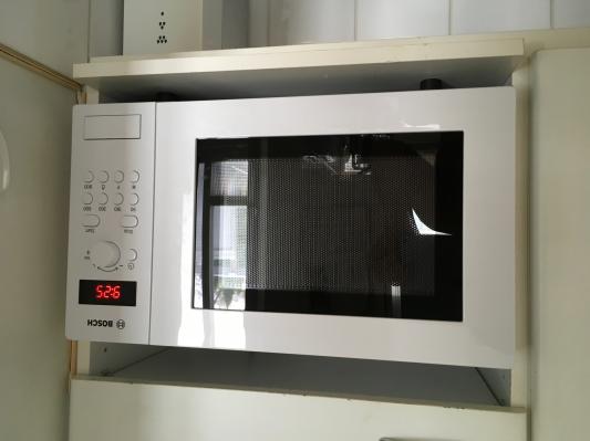 Tässä kompaktissa sarjassa ei valinnanvaraa enää hirveästi ole, ja siinä joukossa tämä Boschin mikroaaltouuni täyttää tehtävänsä. Uuni on valmistettu Kiinassa, mutta kuitenkin suhteellisen laadukkaan oloinen ja teho riittävä. Samaa laitetta myydään eri paikoissa myös tuotemerkeillä Siemens (HF15G241) ja Neff (HW5220N). 17 litran tilavuus on pienehkö, mutta riittänee useimpiin tarpeisiin. Mukana ei tule mikrokupua, ja sopivan kuvun löytäminen oli hieman työlästä. Lautasen koko on 24,5 cm ja itse päädyin hankkimaan 27,0 cm läpimittaisen kuvun, jonka alle pyörivä lautanen mahtuu kokonaan. Uunin käyttöliittymässä olisi vielä kehitettävää. Jo yli 10 v vanhassa Whirlpool-mikrossa starttinappulaa painamalla sai aina 30 s lisää aikaa, ja uuni käynnistyi oletuksena aina suurimm alla teholla. Tässä uunissa pitää joka kerta valita ensin teho ja painaa sitten vielä start. Oletuskäyntiaika on aina 1 minuutti. Lisää aikaa pitää kääntää kiertokytkimellä. Avausnappula on melko jäykkä, ja luukkua avatessa uuni tuppaa siirtymään hiukan taaksepäin. Kokoon ja toimintoihin nähden uuni on melko kallis