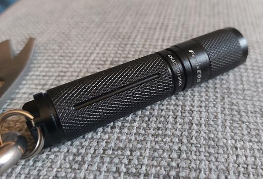 Ostin tämän avainnippuun koska sopivan pieni ja toimii normaalilla AAA paristolla, 3 eri valotehoa myös erittäin kätevä ja helppo vaihtaa kun tarvitsee vain pyöräyttää taskulampun päätä, ei varmasti mene taskussa vahingossa päälle.