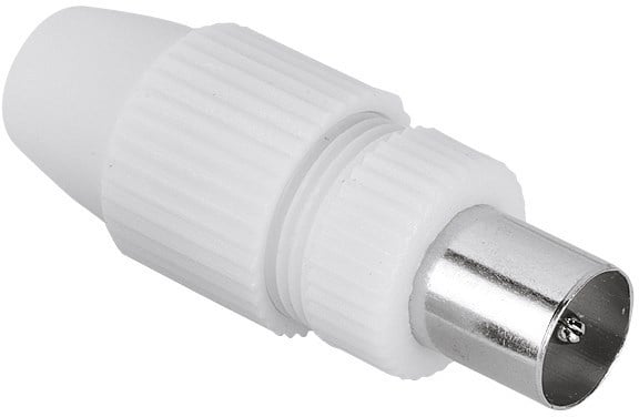 Hama koaksaaliliitin antennikaapeeliin, uros, valkoinen