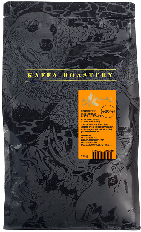 Kaffa Roastery Espresso Barabica -kahvipapu, 1 kg + 200 g