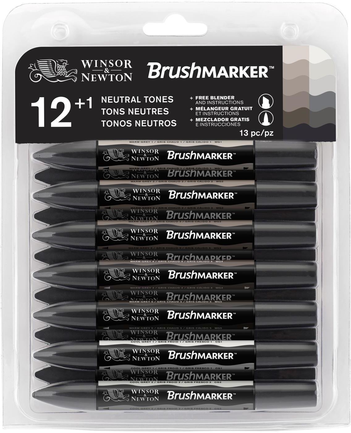Winsor & Newton Brushmarker Greys -tussilajitelma, 12 tussia