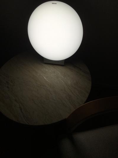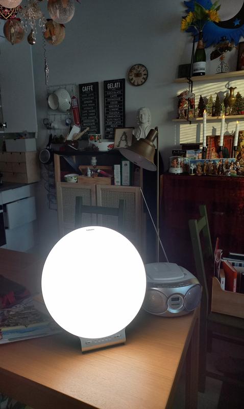 Lamppu on ollut oikein hyvä tähän pitkään pimeään aikaan. Ensimmäisinä päivinä päätä vähän särki, voi tietysti johtua jostain muustakin, mutta viikon totuttelun jälkeen se on hyvin piristänyt ja virkistänyt. Olen käyttänyt sitä aamupäivisin 15 min täydellä teholla, ja se on ollut riittävä aika.