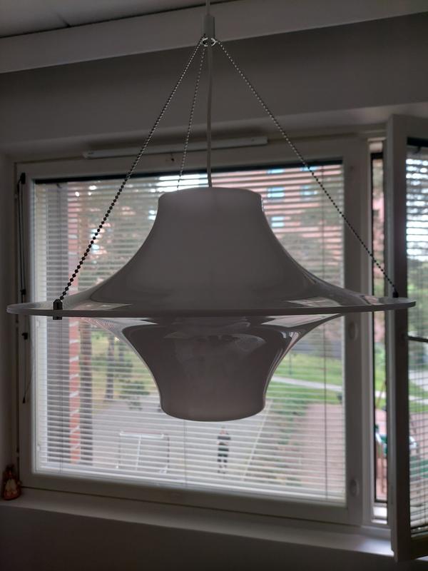 Aivan ihana ja huipputyylikäs valaisin ruokapäydän päälle. Epäsuora valo tulee upeasti valaisimesta. Arvonsa säilyttävä!
