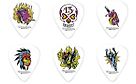 6 kappaletta Dunlop Alan Forbes Blackline plektroja. Kuuluisan graafikon, Alan Forbesin, kuvittamia plektroja.