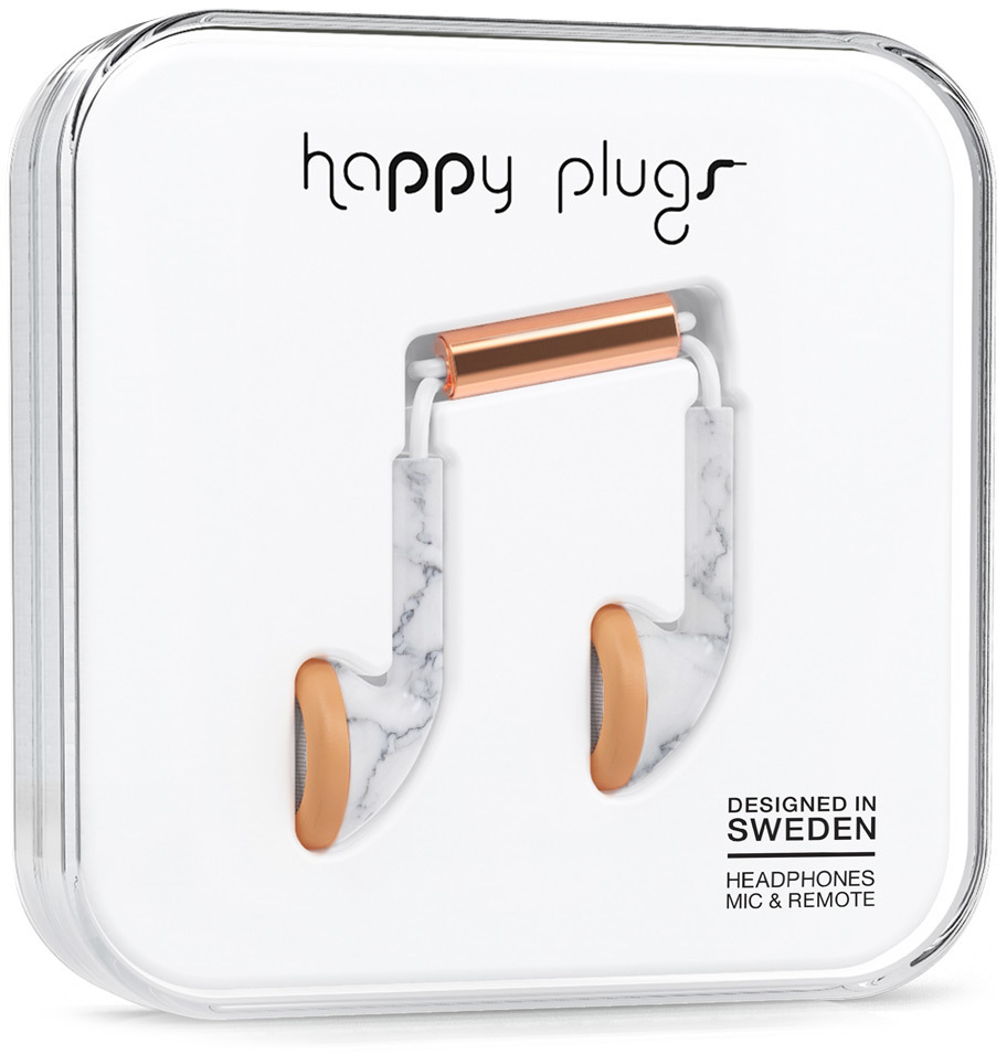 Happy Plugs Earbud -nappikuulokkeet, valkoinen marmori