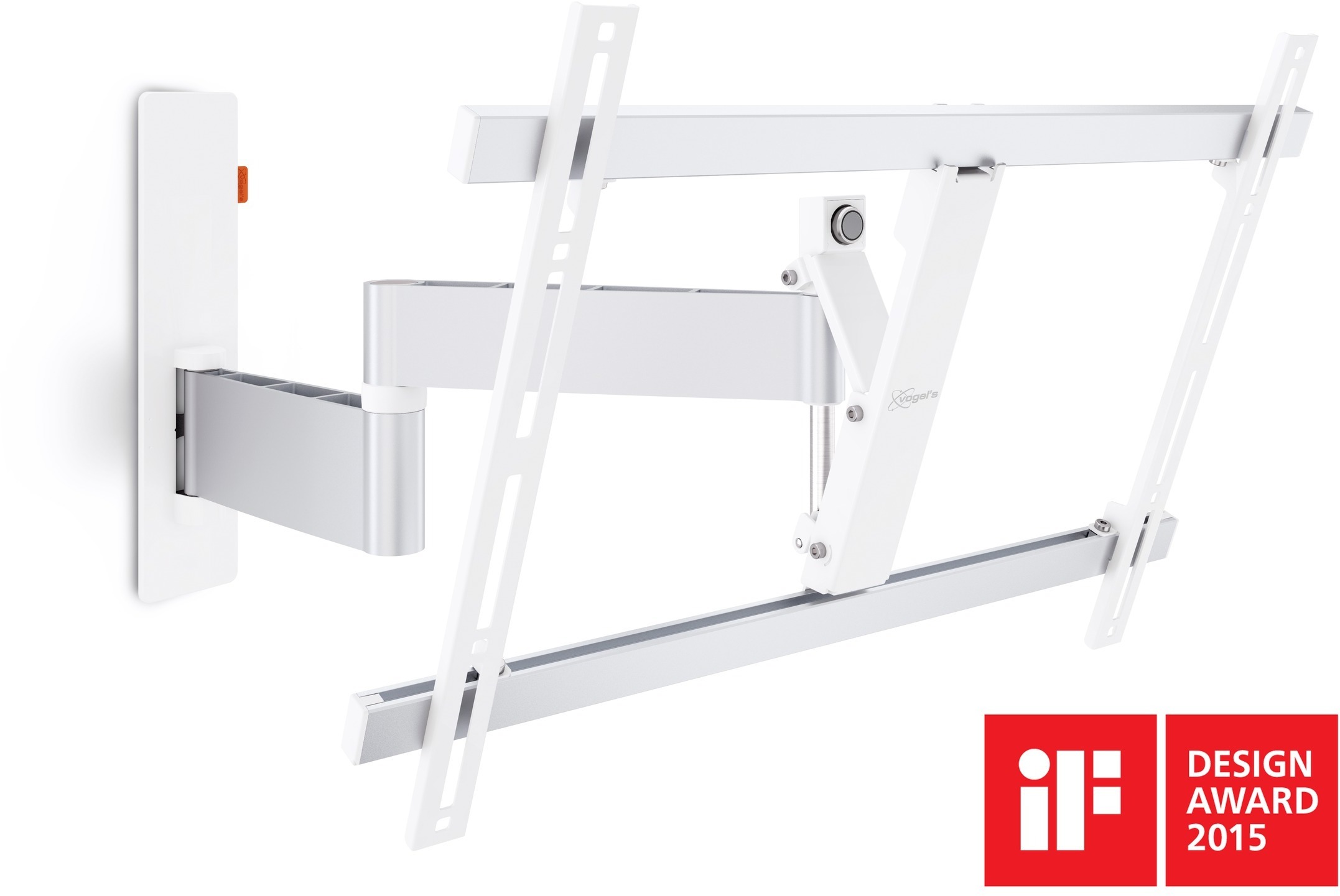 Enintään 65-tuumaisille televisioille WALL 2345 -telineellä voi kiinnittää seinälle 40?65-tuumaisen television. Sen avulla voi kiinnittää turvallisesti ja varmasti enintään 30-kiloisen television. Joustavaa katselua huoneen joka kolkasta Vogelin vapaasti käännettävällä WALL 2345 -telineellä voit nauttia televisiotarjonnasta huoneen eri nurkista. Täydellinen näkymä ruokapöydästä ja läheisestä olohuoneesta. Upea tapa seurata suosikkisarjoja eri paikoista. Tärkeimmät edut: Yksinkertaisesti järkevä valinta: Käyttömukavuutta edulliseen hintaan. Televisiota voi kääntää portaattomasti jopa 180°. Johtokanava. Televisio on helppo vaaittaa myös asennuksen jälkeen. WALL-sarja: yksinkertaisesti järkevä valinta. Vogelin suunnittelijat hyödynsivät yli 40 vuoden kokemusta huippukestävästä hollantilaisesta AV-muotoilusta kehittäessään WALL-sarjan puhdaslinjaiset ja nykyaikaiset telineet. Lopputulos on edullinen ja järkevä seinäteline, jolla on elinikäinen takuu. Yksinkertaisesti järkevä valinta.