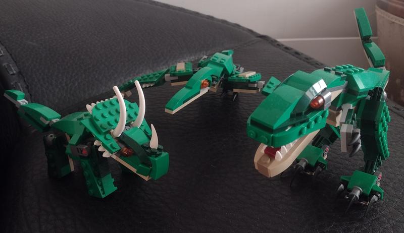 Ostin lapselle rakennettavaksi kaikki kolme ja yllättävän hyvin ovat pysyneet kasassa. Ovat paljon yksityiskohtaisempia ja mielenkiintoisempia kuin isojen settien mukana tulevat muutamasta osasta koostuvat dinosaurukset. Neljännellekin dinolle löytyy YouTubesta lapselle sopivat ohjeet.