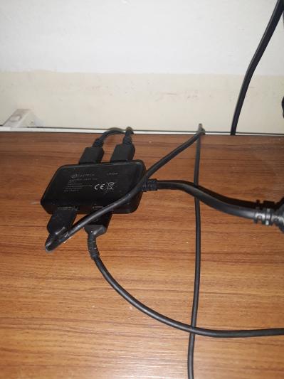 Hyvin tuntuu toimivan eikä ollut pahan hintainen. Koneessa kaksi omaa usb-porttia on kirjaimellisesti sökönä ja tästä sai helpostusta johtojen alituiseen vaihtamiseen.