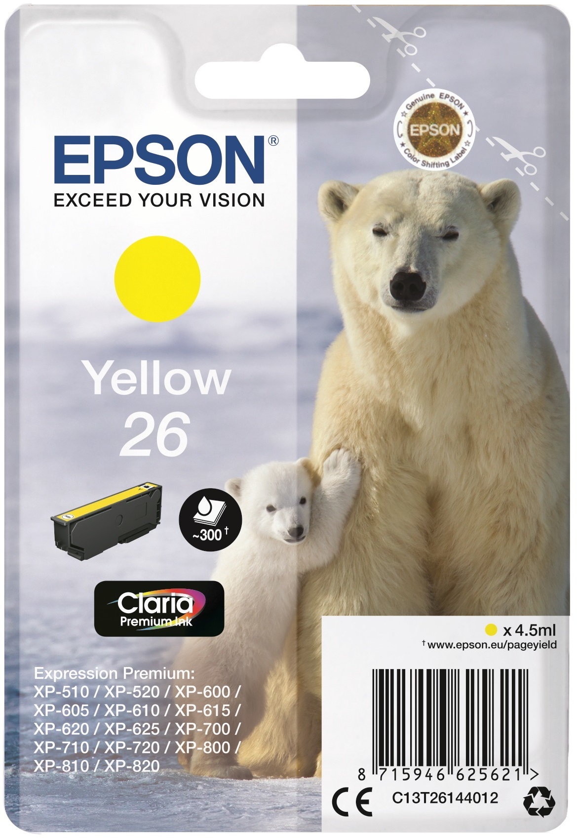 Epson 26 Claria Premium Ink -mustekasetti, keltainen