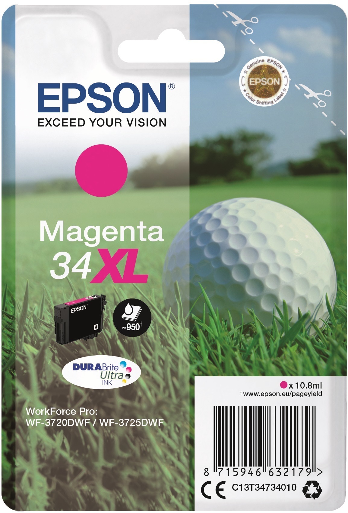 Epson 34XL -mustepatruuna, golfpallo, magenta