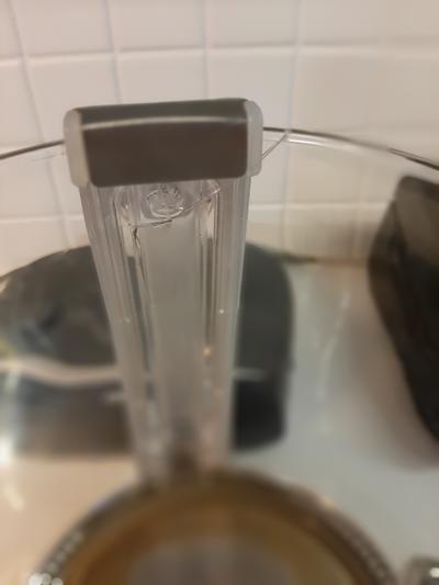 Olisi kannattanut ostaa BPA-vapaa tuote. Esim. kannu olisi kokonaan lasia, ei sekä terästä että lasia. Nyt keitän kokonaisia kannullisia ja kaadan veden heti toiseen lasikannuun jotta vesi ei jäisi keittimeen keräämään muovimakua. Jos haluan keittää veden kokonaan ensin, kaadan siis vettä ensin lasikannuun ja lasikannusta takaisin vedenkeittimeen saadakseni 70-asteista vettä. Tämä ei ollut alkuperäinen suunnitelma.