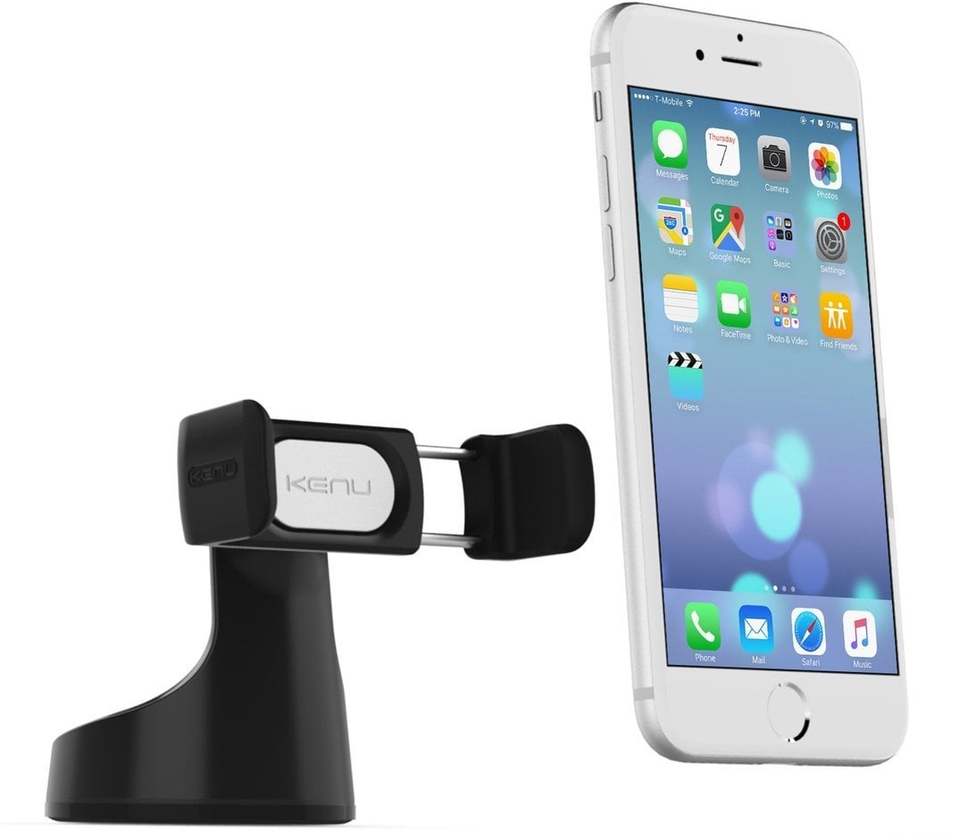 Yksinkertainen kännykänpidike autoon. Erityisen hyvä imukupin materiaali, jotain tahmeaa ja pehmeää kumia joka tarttuu jo itsessään ilman imukuppimekanismia epätasaisiinkin pintoihin.