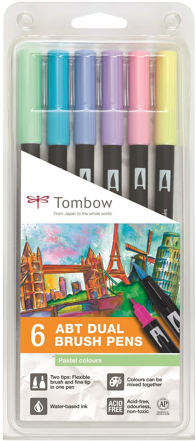 Tombow ABT Dual Brush 6P-2 -vesiväritussit, 6 kpl, pastellivärit