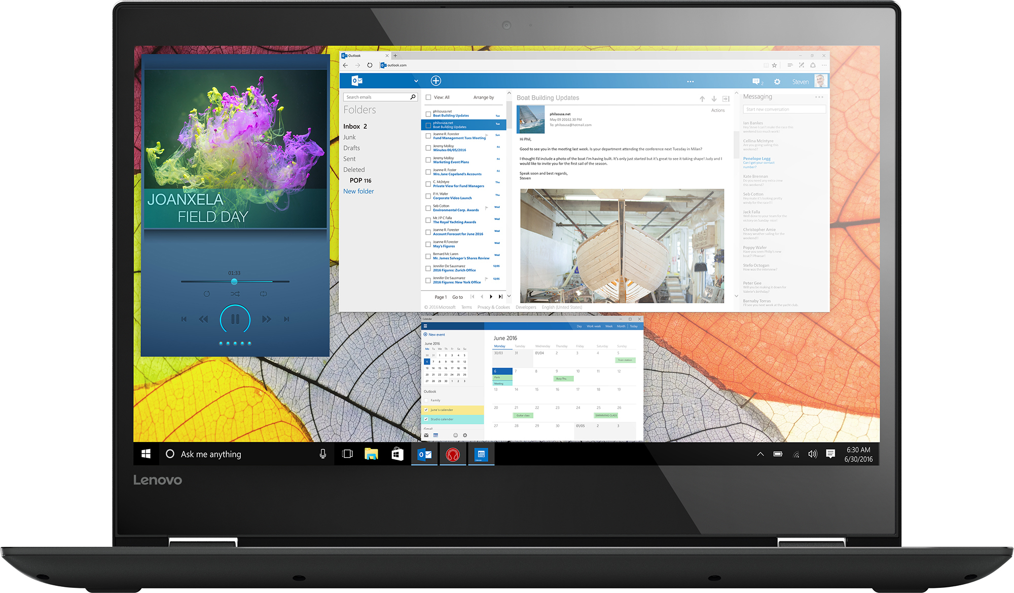 Yoga 520 sisältää terävän Full HD -kosketusnäytön, jonka IPS-paneeli tarjoaa eloisat värit ja hyvät katselukulmat. Selkeä äänimaailma luodaan Harmanin kaiuttimilla ja Dolby Audio Premium -tekniikalla. Sulavaa käyttökokemusta tarjoavat mm. Intelin suoritin, DDR4-muistit sekä huippunopea PCI Express SSD-levy.