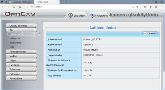 Janne35–44vOpticam O6 PoE tukee sekä ONVIF että RTSP -protokollia. Selaimella kiinni kameran hallintaan ja verkko/network-valikon alta voidaan portit määrittää.