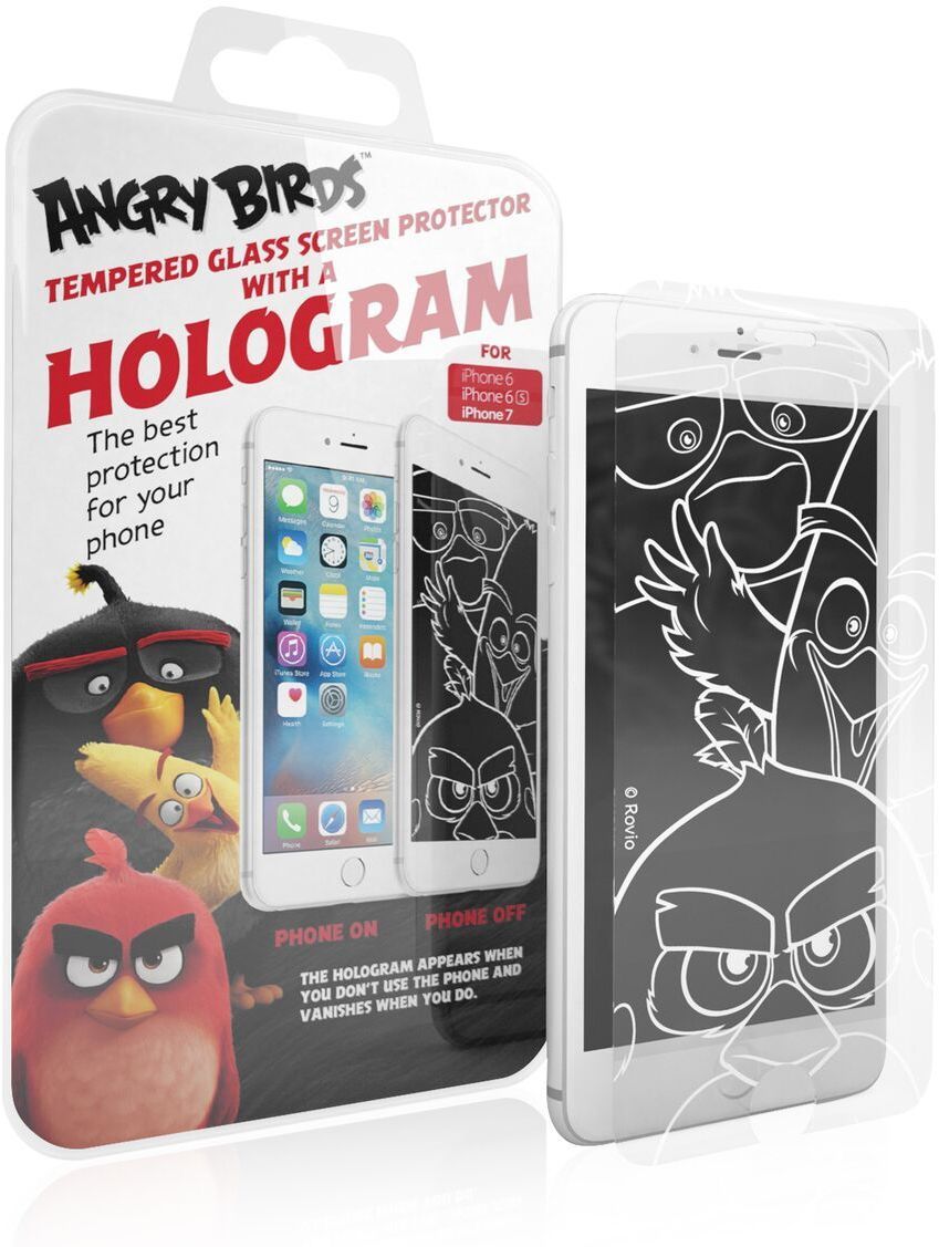 DoCover Angry Birds -hologrammilasikalvo, Red, Apple iPhone 6 / 6S / 7 / 8