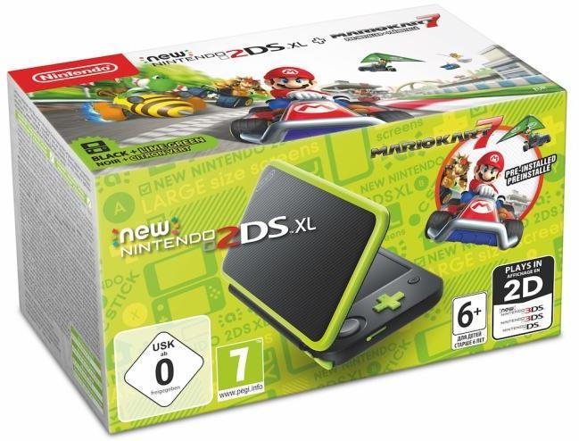 New Nintendo 2DS XL + Mario Kart 7 -pelikonsolipaketti, musta / vihreä