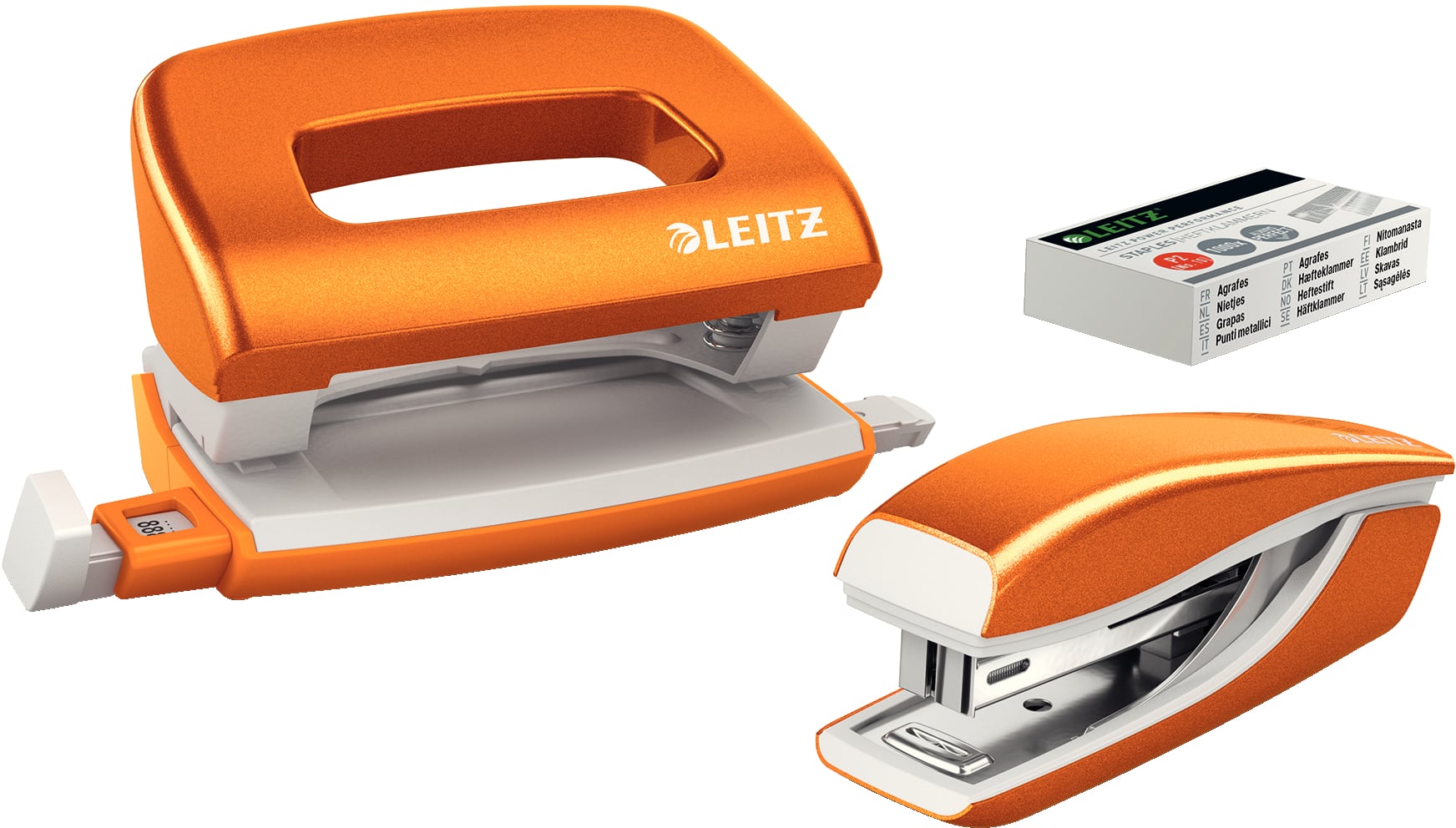 Leitz Mini WOW nitoja- ja lävistäjäsetti, oranssi