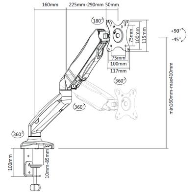 Hei, voiko varren kääntää 360° vaakasuorassa? Tai edes 180°? Ja kuinka ohut/paksu pöydän täytyy olla, että varren saa kiinni?