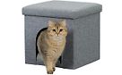 Tyylikäs meleerattu harmaa luolapeti sopii kissoille ja pienille koirille. Pehmustetun kannen alla on säilytystilaa leluille.