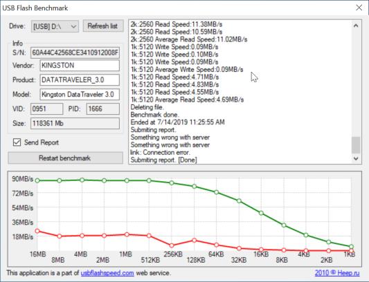 Mielenkiinnosta ajoin USB flash benchmarkin ja tulokset liitteenä.