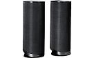 Valitettavasti kaiuttimista ei löytynyt takapanelikuvaa. Kaapeliliitännät ovat suojakannen alla ja tyypiltään "paina nappulaa ja tökkää kuorittu kaapelin pää väliin"